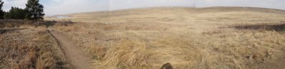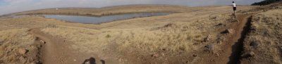 The western part of the Pineridge Foothills Trails is called Timber Trail and it runs close along the edge of the foothills. The following panoramic picture was taken at the north end of the Timber trail and includes Dixon Reservoir in the background.