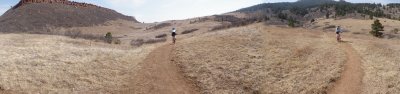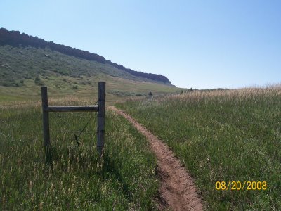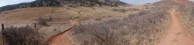 The East Valley Trail (#8 in the trail map) is a 2.3 mile single track trail with a minimal number of rocks, no extended climbs, and an open view of the surrounding landscape. It contains short branches of trail that extend eastward towards the Horsetooth Reservoir. A red fox was seen along this trail though not in the following picture.
