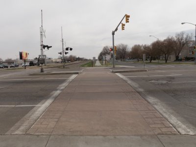 The Mason Street bicycle trail is interrupted by four street crossings: Drake Road, Swallow Road, Horsetooth Road, and Harmony Road. Each of the four street crossings includes a stop light and crossing signal button to protect cyclists from oncoming traffic.