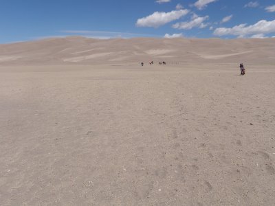 The entire 30 square miles of dune field is open to hiking but there are two dunes that the park recommends summiting: High Dune and Star Dune. We attempted to summit High Dune which is 650 feet tall and 8,650 feet in elevation. The first part of the hike is easy because it travels across flat, thick sand. Shoes must be worn at all times because the sand can reach temperatures upwards of 140 degrees on summer afternoons. Early morning and late evenings are the recommended dune hiking times. In addition, the sand dunes should be avoided during thunderstorms because of the chance of lightning strikes.