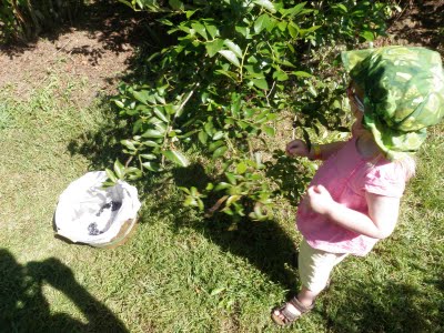 Our two and half year old daughter had a lot fun tasting and picking blueberries because there were plenty at her eye level. However, the blueberry plants do not offer much shade so a floppy sun hat and sun tan lotion are advocated for children.