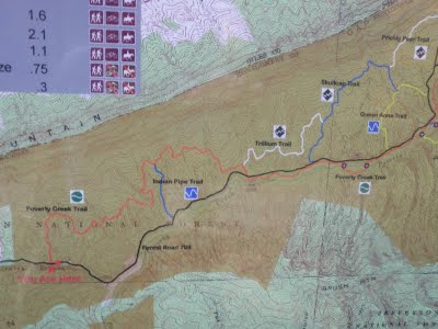 Ride on Poverty Creek for 3.1 miles before turning left on Trillium.