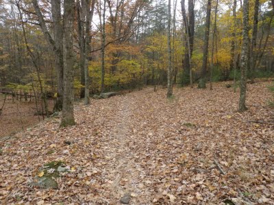 All racers ride on Trillium for ~1.0 mile before turning left on Skull Cap trail. Trillium is rockier and more technical than Poverty Creek and includes one prolonged climb and one mildly tricky descent. In 2009, the leaves and wet conditions made some stretches of trail slippery but the race is a month earlier this year so leaves should be less of an issue.