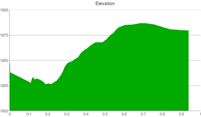 All of the hills in the park are small so elevation changes are minimal. The following elevation chart was recorded on a bike ride that started from the Glade Road parking lot and headed east and south around the largest grassy hill loop.