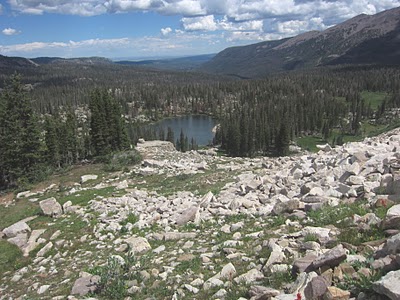 Cutthroat Lake can be seen below with Wyoming in the distance.