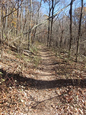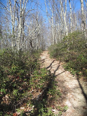 The final stretch of trail is on the north side of the ridge and continues until you reach blue blaze trail markers that lead to the knob.