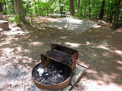 The Roanoke Mountain Campground tent sites include a picnic table, a fire pit, and a square area for setting up a tent. The tent sites are clustered closely together in groups of three or four. It seems like it would be more fun to camp with a group of friends using all of the sites in a cluster as opposed to camping as a single family with people you don’t know only a few feet away. Also, it appears that the sites are first come, first serve.