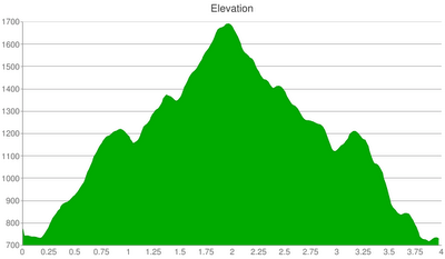 I visited in May 2011 on a very hot day and only made it partially up the blue trail. The following elevation chart is from my mom’s winter visit because she completed the blue trail and used a segment of the orange trail to form a loop. The blue trail is 1.7 miles long with an elevation gain of a 1,000 feet, from 700 to 1,700 feet.
