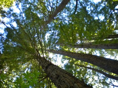 The redwoods tower over the trail almost completely blocking out the sun and, thus, it felt cooler on the trail than it did in town.