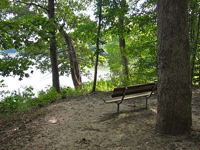 At the intersection of S-2 and S-1 there is a third trail C-1 that connects to the Woodpecker Nature Trail. We continued on S-1, which heads east toward Coralville Lake. The S-1 trail gets close enough to the lake to provide a semi-obstructed view of it. We enjoyed a snack while sitting on a park bench that overlooks the lake.
