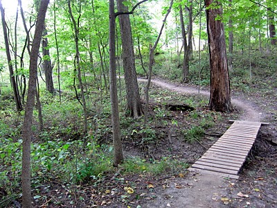 In sum, Beverly Park has an impressive and intricate set of trails squeezed onto a small plot of land. The easy trails are fast and curvy. The difficult trails contain some of the coolest human-made obstacles I have ever seen. Off the top of my head, I can only think of three places I have mountain biked that have human-made obstacles as cool as the ones here. The first is the mountain bike skills park in Fort Collins, Colorado. The second is the Poverty Creek Trail System in Virginia. And, the third is Scott County Park north of Davenport, Iowa. Visitors to Cedar Rapids should also check out the trails in Thomas Park and at Sugar Bottom near Coralville Lake.