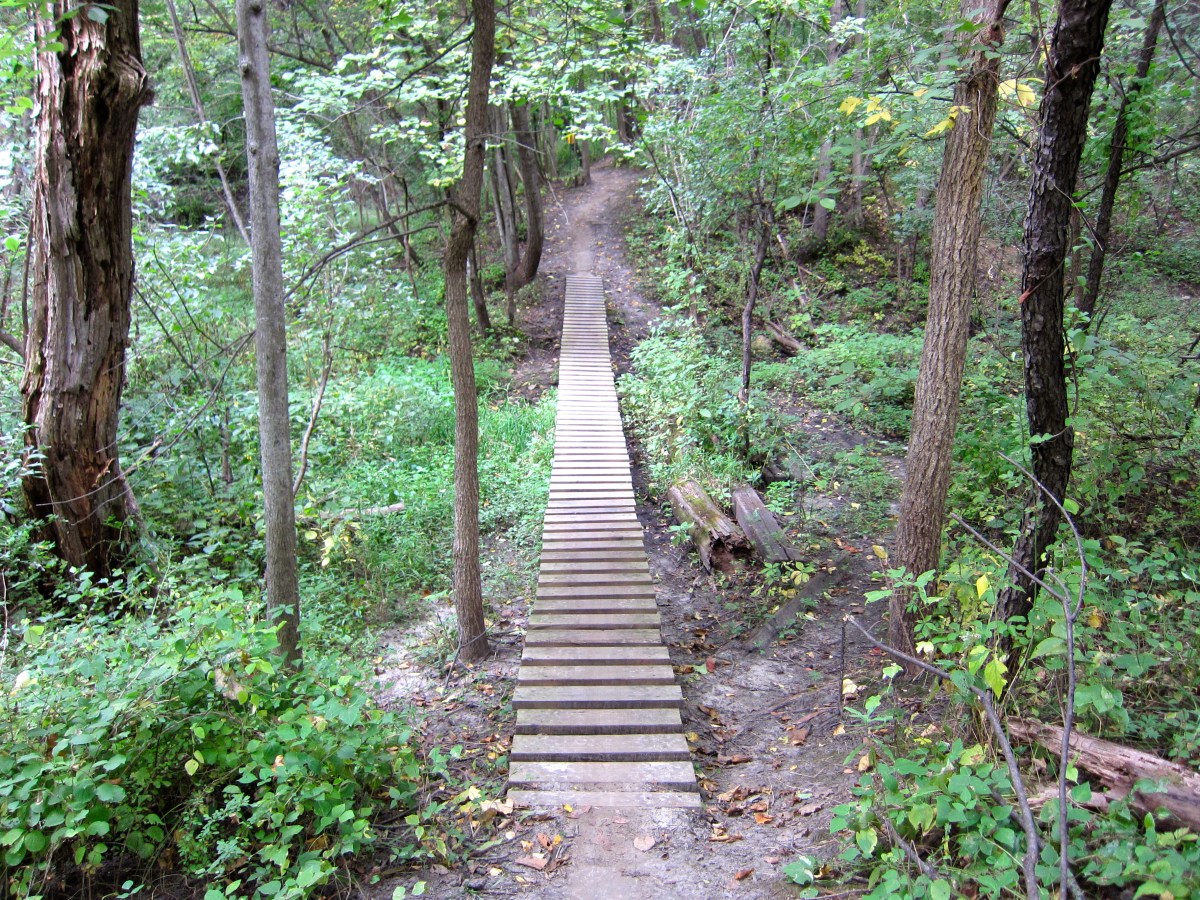 In sum, Beverly Park has an impressive and intricate set of trails squeezed onto a small plot of land. The easy trails are fast and curvy. The difficult trails contain some of the coolest human-made obstacles I have ever seen. Off the top of my head, I can only think of three places I have mountain biked that have human-made obstacles as cool as the ones here. The first is the mountain bike skills park in Fort Collins, Colorado. The second is the Poverty Creek Trail System in Virginia. And, the third is Scott County Park north of Davenport, Iowa. Visitors to Cedar Rapids should also check out the trails in Thomas Park and at Sugar Bottom near Coralville Lake.